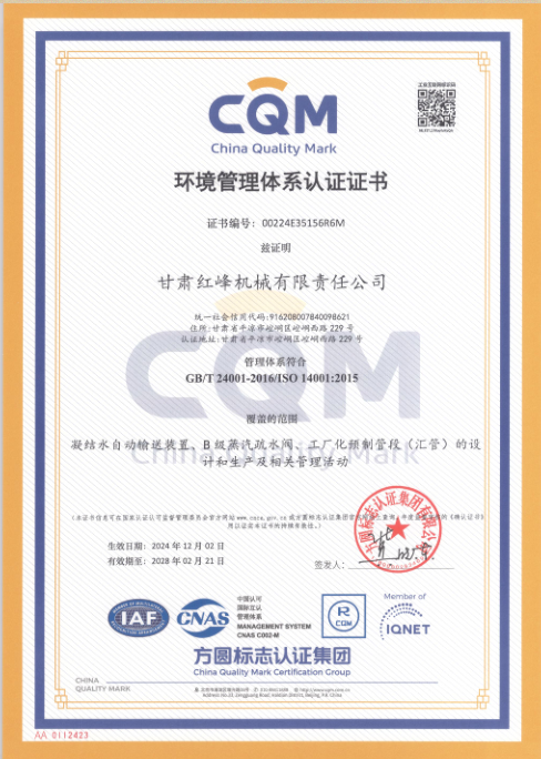 環境管理體系認證證書