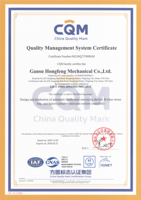 公司基于蒸汽系統對泵閥設備可靠性、穩定性、耐用性、安全性的嚴格要求,建立了包括采購管理、生產控制、性能驗證、質量檢驗、售后服務等在內的一整套質量保證和控制體系,全心全意為優質產品保駕護航。