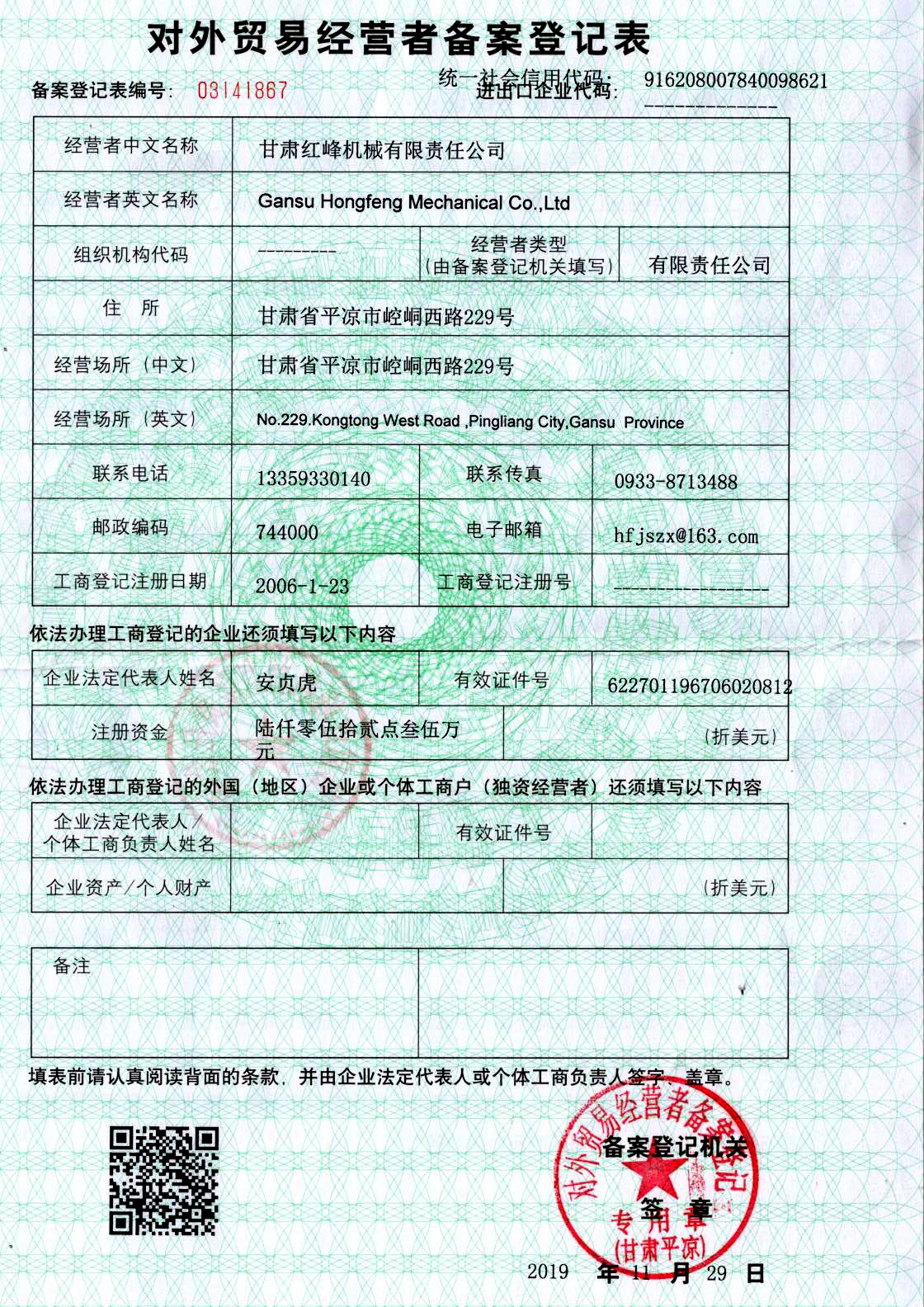 對外貿易經營者備案證書