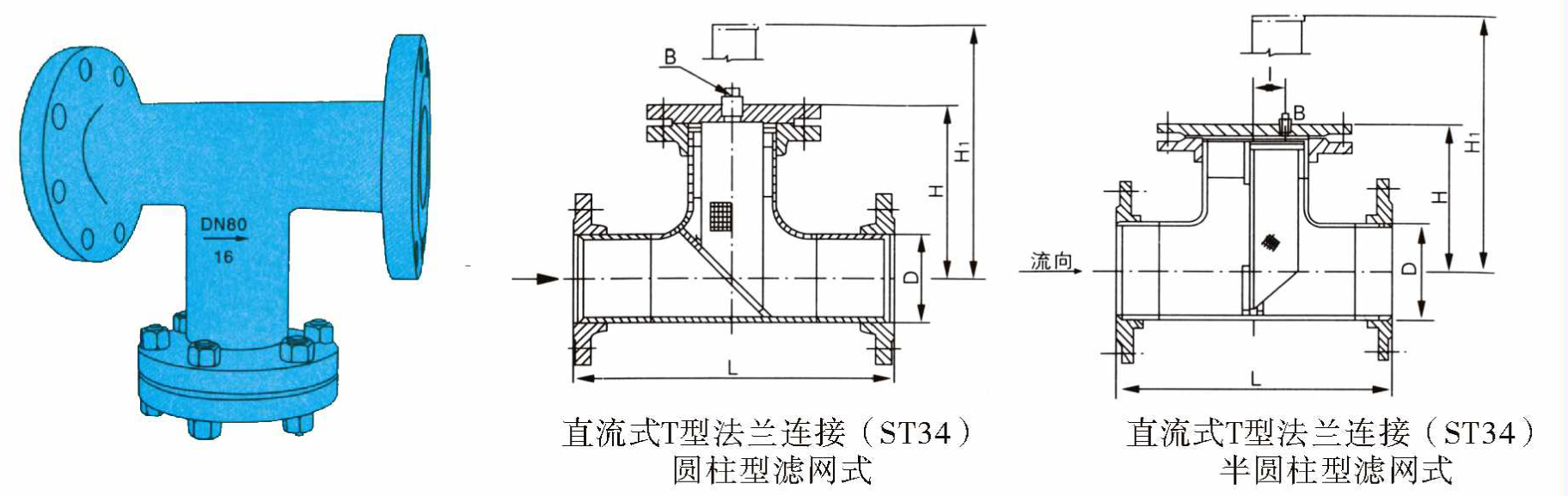 法蘭連接直流式T型過濾器安裝于進水管路中各配套閥門的前端,當管道中的介質首先進入過濾器時,介質通過濾網進入被連接的閥門中,而雜質則留于過濾桶內,使各類閥門不會由于機械雜物卡入密封圈而失靈。