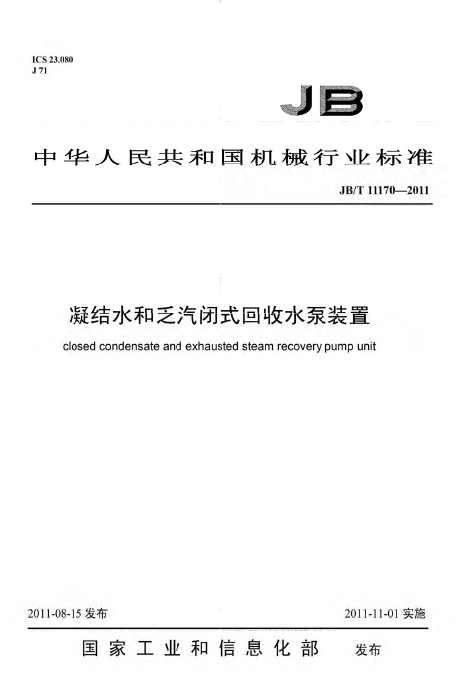 凝結(jié)水和乏汽閉式回收水泵裝置 試驗方法